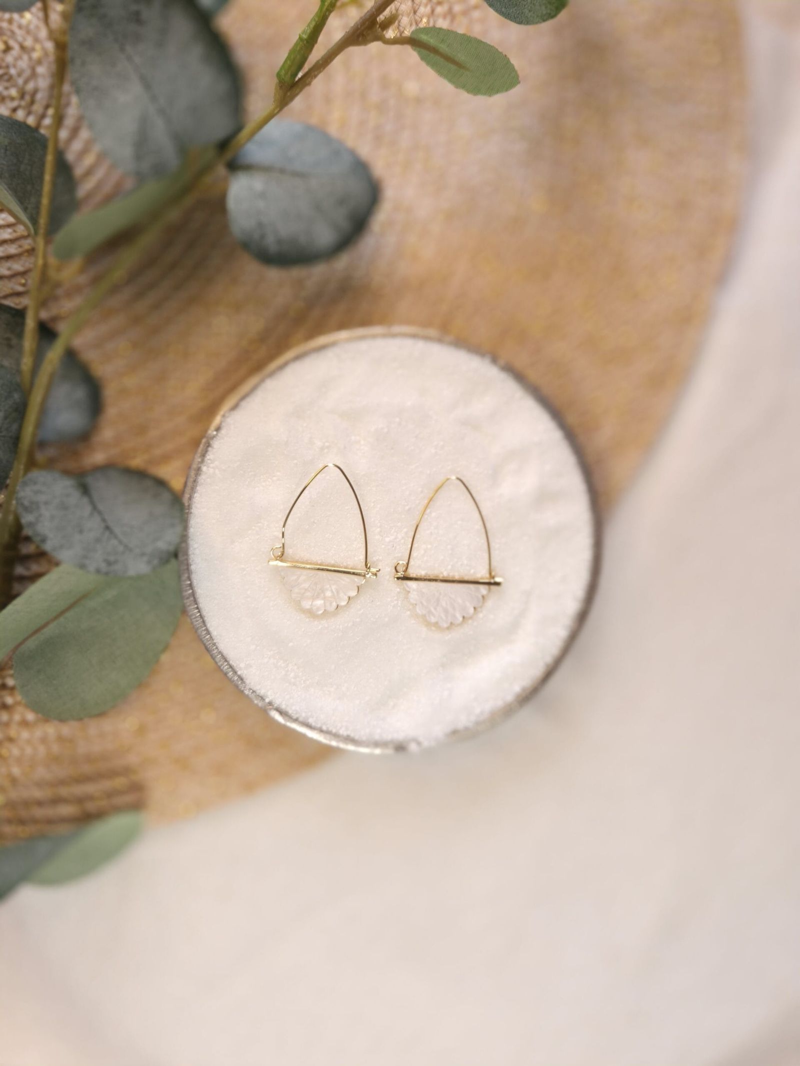 Gouden oorbellen met wit bloemmotief – Elegant & Tijdloos Design